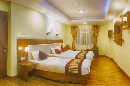 Backyard Hotel is situated in a bustling tourist area of Thamel in a very convenient location for everything that a tourist might be looking for, the best restaurants, shopping, the best bookshops and the tourist bus stop. This 30 roomed hotel offers excellent service in a clean and comfortable environment where you will find people eager to please you all the time. Standard, deluxe and super deluxe rooms are available for booking. Just 5 km away from the TIA, a airport pickup is provided by the hotel with a surcharge if requested in advance via e-mail.