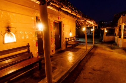 A small, community supporting, holiday house, 7 standard rooms in a typical rural environment on the border with Sauraha in Chitwan, Nepal. Bar with 24-hour service. Loads of interesting activities available like: cooking classes, learning to drive the ox cart, fishing, henna tattoo, workshops handicraft and decoration… . A possibility to rest and relax in one of our beautiful outdoor spots. A great village experience!